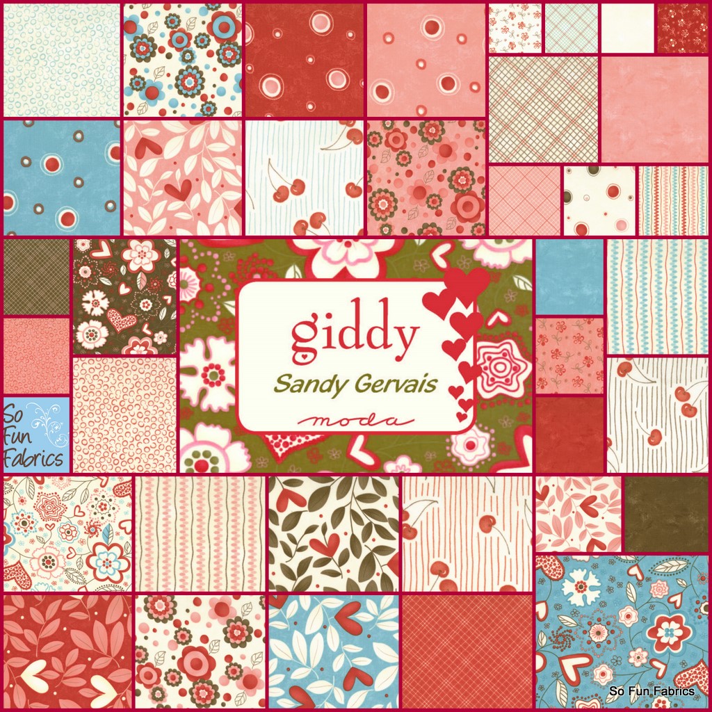 Looking for some fabric to make your Valentine's Day project with? Giddy by Sandy Gervais is the perfect collection, yet the designs are also subtle enough to use throughout the year. Wouldn't this line be adorable for a little girl's room?! We love the modern color combos offered in this line: brown and aqua, pink and brown, aqua and red. Gorgeous colors and fun designs! Pre-cuts are great for quilts, craft projects, wall hangings, table runners, placemats and more!